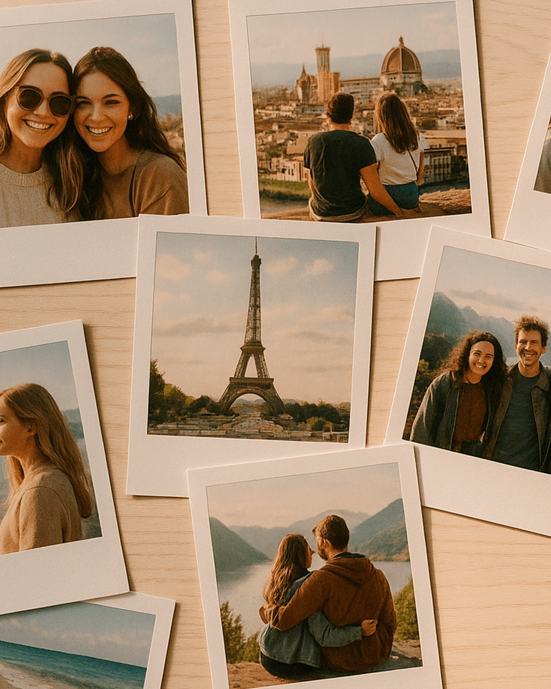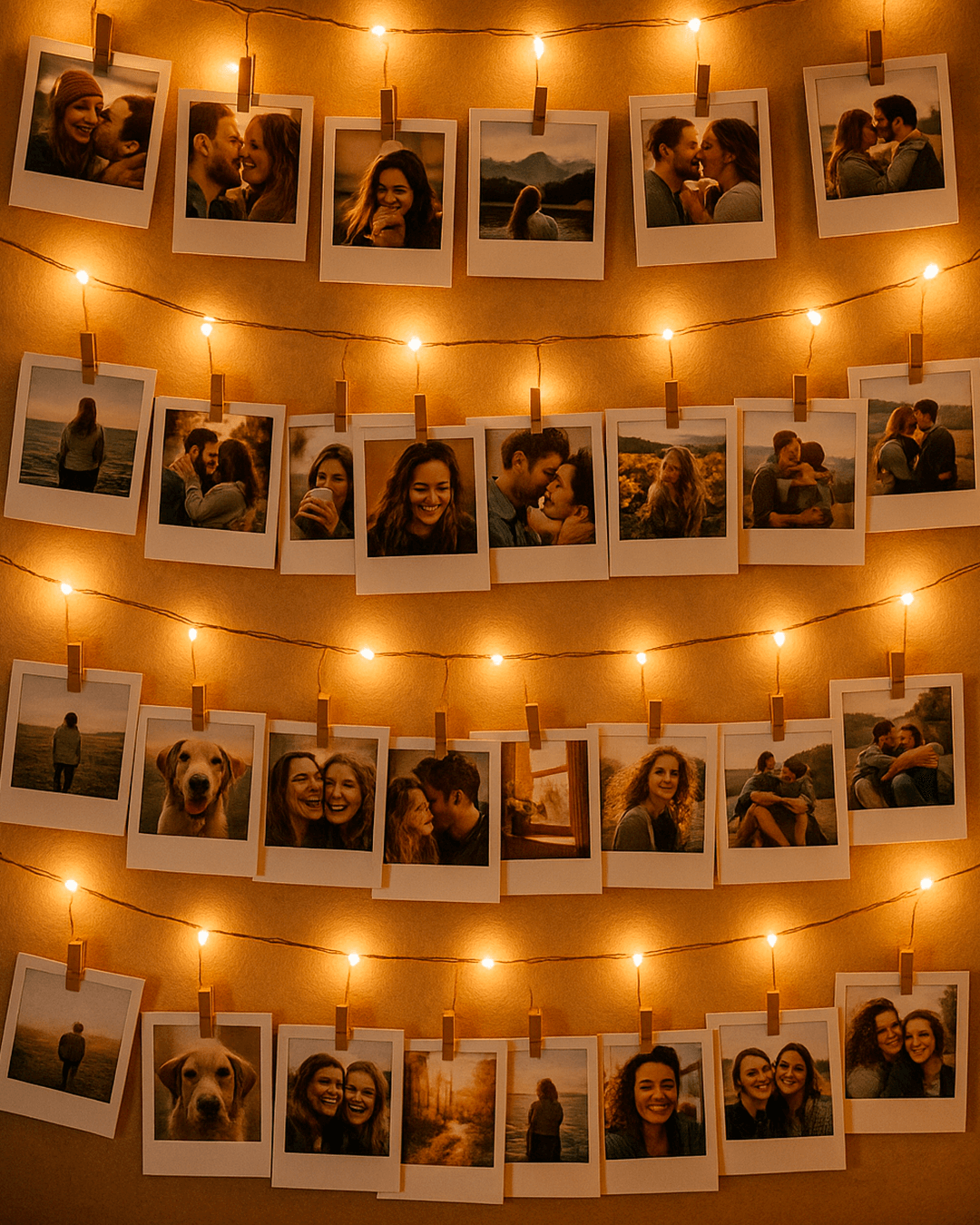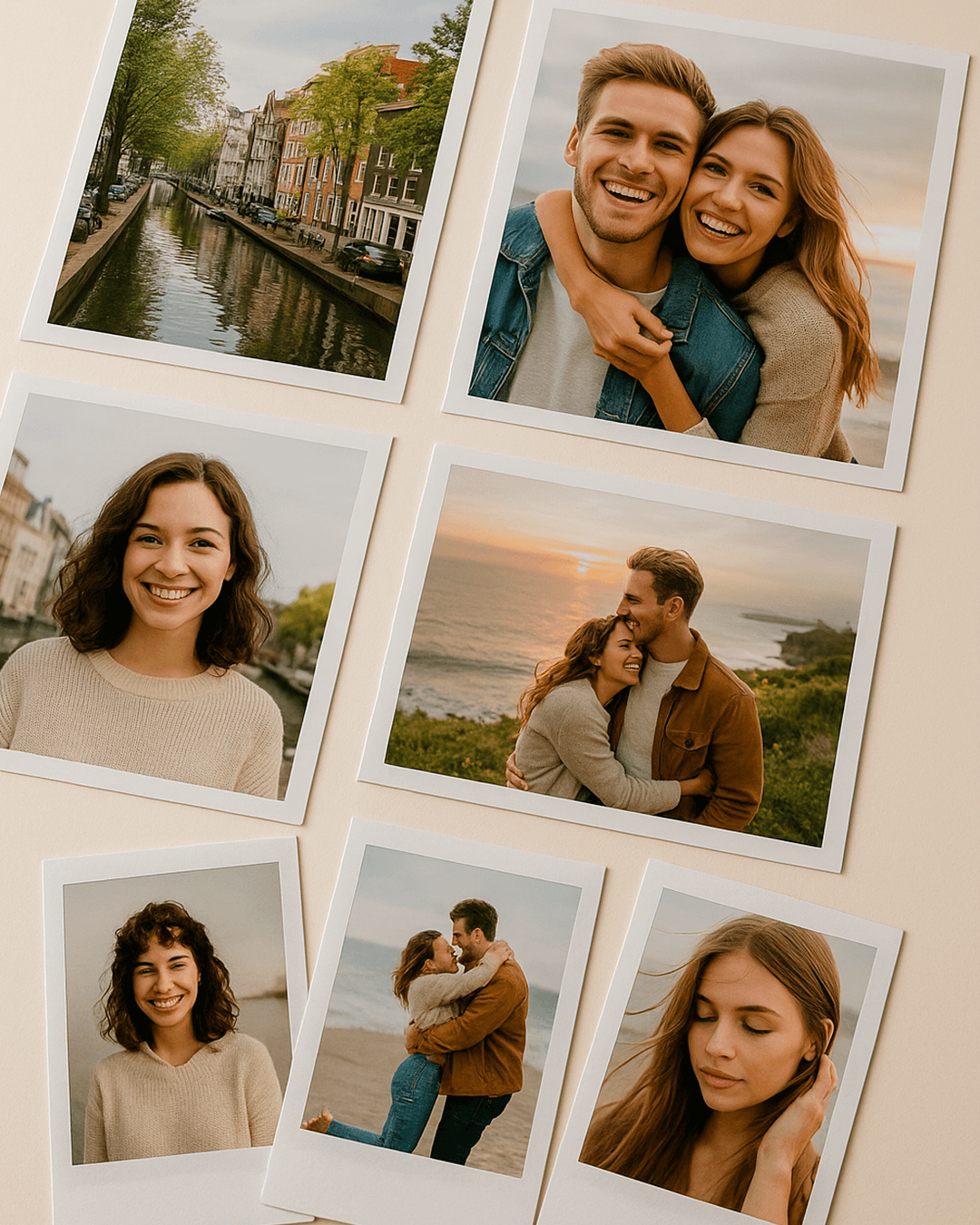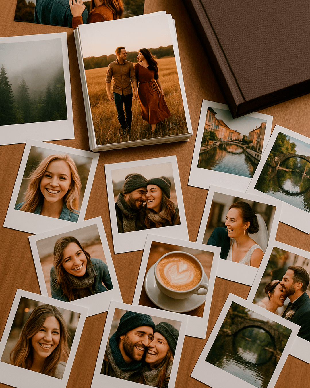 Um conjunto elegante de Polaroids com acabamento premium, perfeito para eternizar momentos inesquecíveis com um toque retrô e artístico.